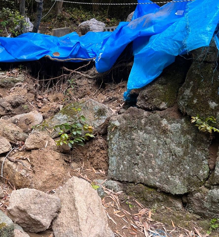 玉野市滝にて崩れた石垣の現地調査を行いました。 雨の多い季節となりつつあります。 付近の石垣に少しでも違和感がありましたら、 近寄らずまずはご相談下さい。