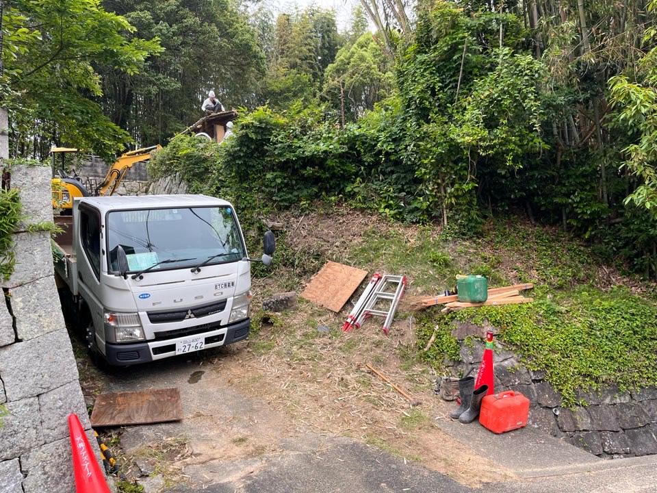 本日、総社市岡谷にて進入路整備外工事を着工させて頂きました。