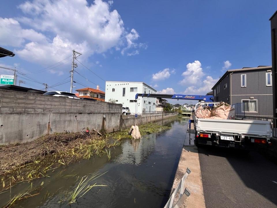 倉敷市中庄にて水路の通水を確保するための水路内草刈作業