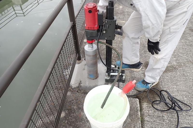 本日は日曜日ですが、 倉敷市中庄にて工事計画をたてるための調査削孔をおこなっています。