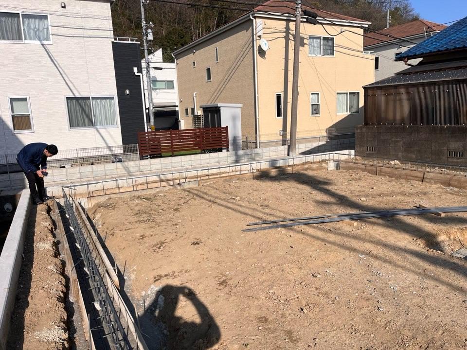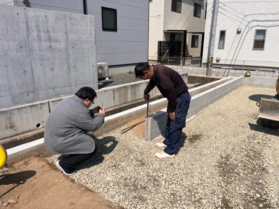 倉敷市福田町福田にて進行中のガレージ新築工事現場にて基礎の検査を行って頂きました。