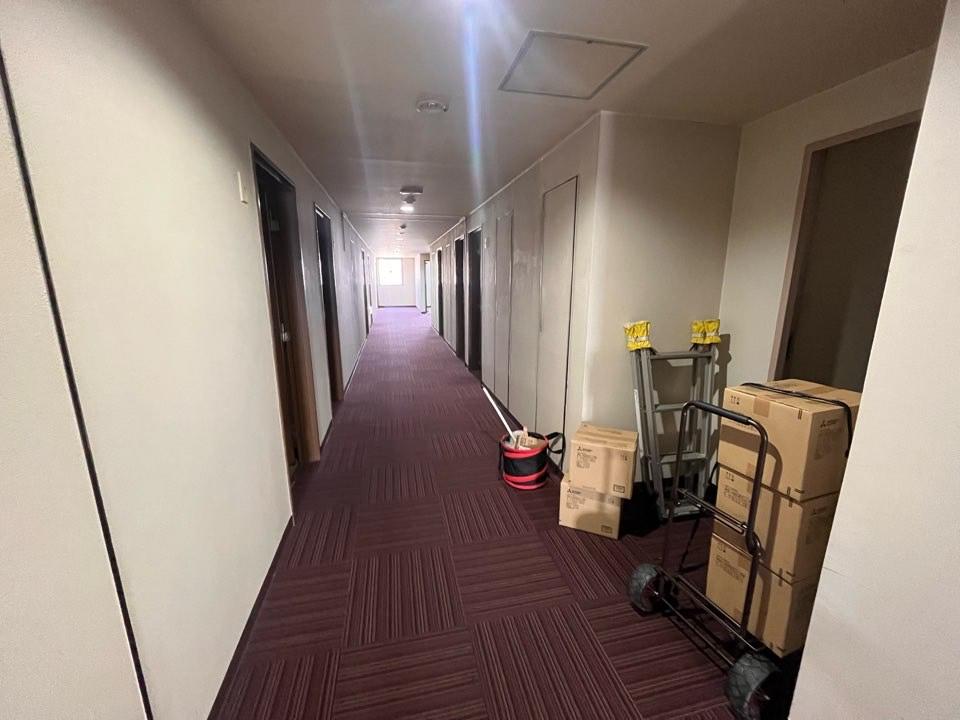 倉敷市水島東千鳥町の某ビジネスホテルにて換気扇の交換を行なっています。