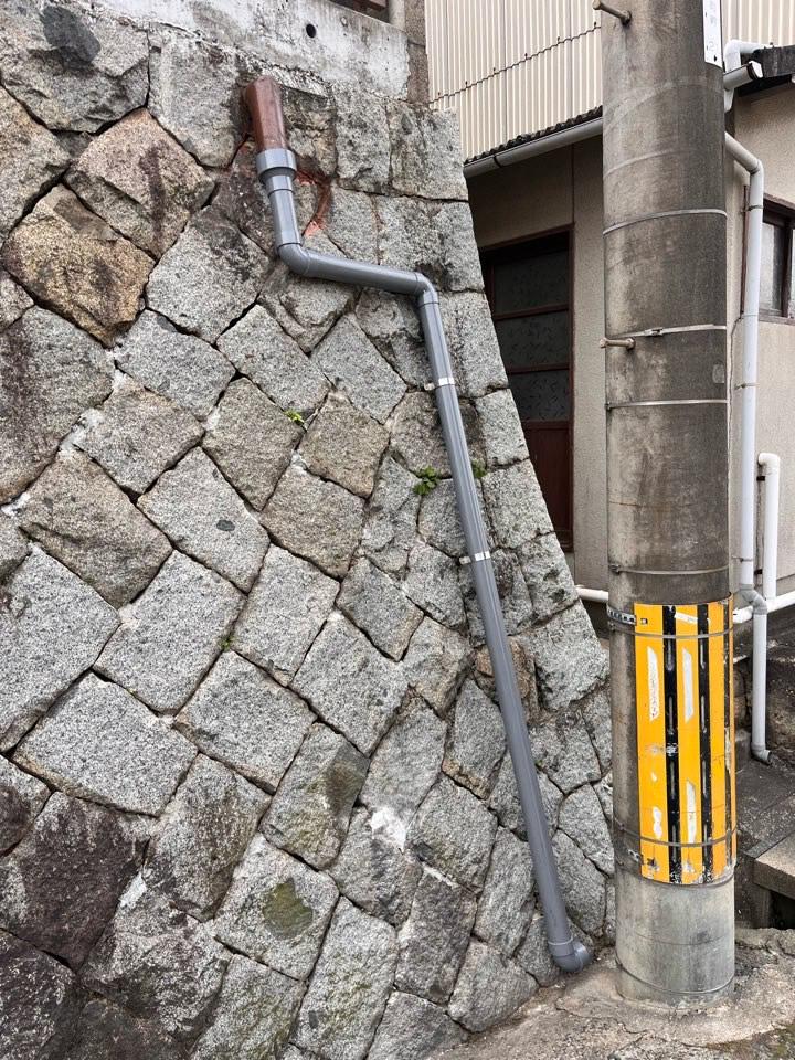 倉敷市玉島乙島にて石垣に面した縦排水管をやり替えました。