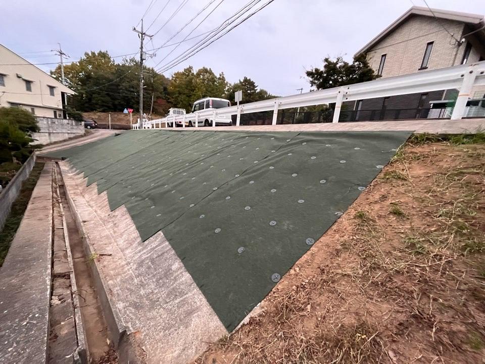 倉敷市中庄にて法面の防草マットを施工しました。